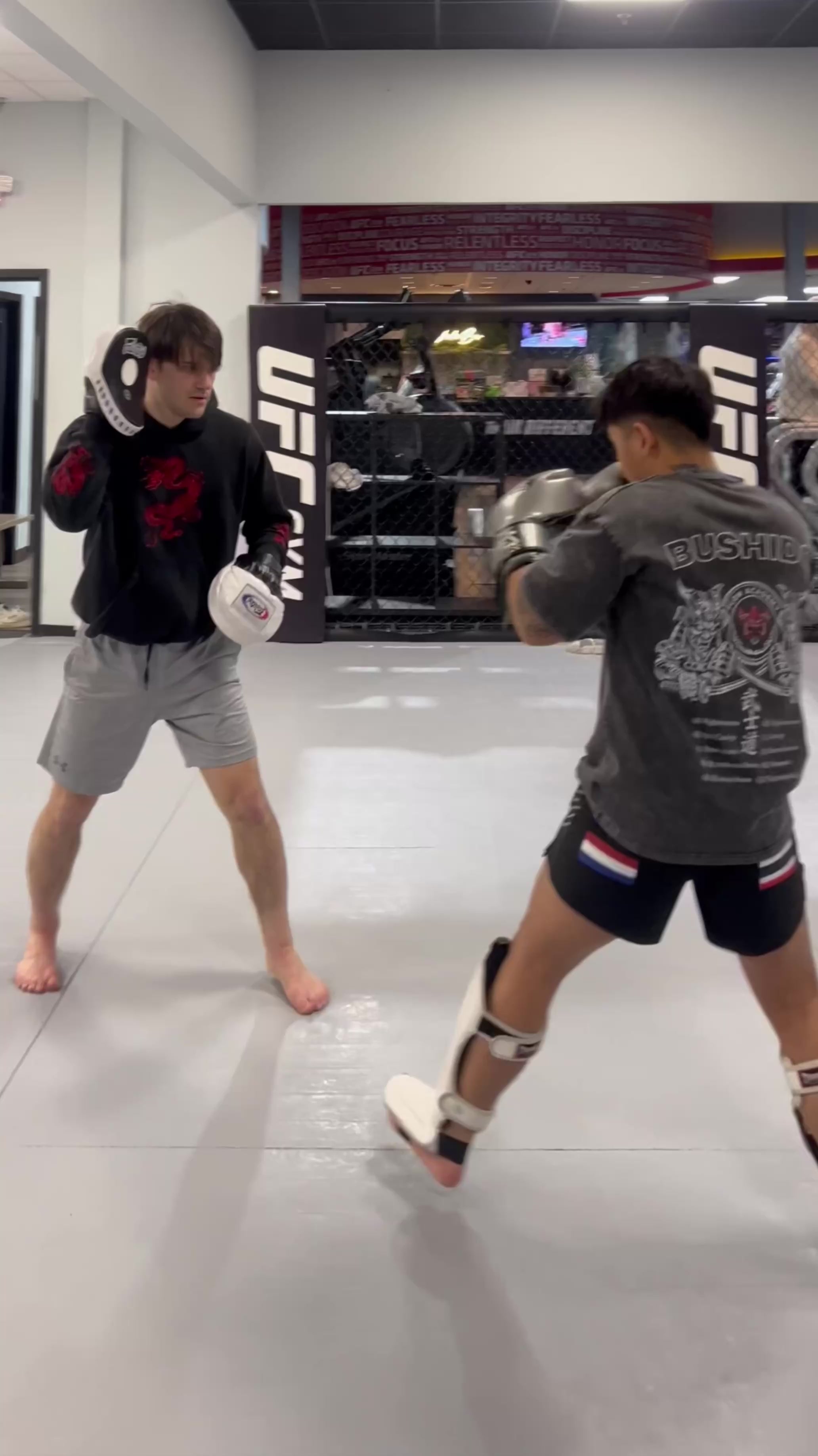 The back carries the Bushido design, representing the full code: Righteousness, Courage, Benevolence, Respect, Honesty, Honor, and Loyalty principles that shape both the fighter and the person.